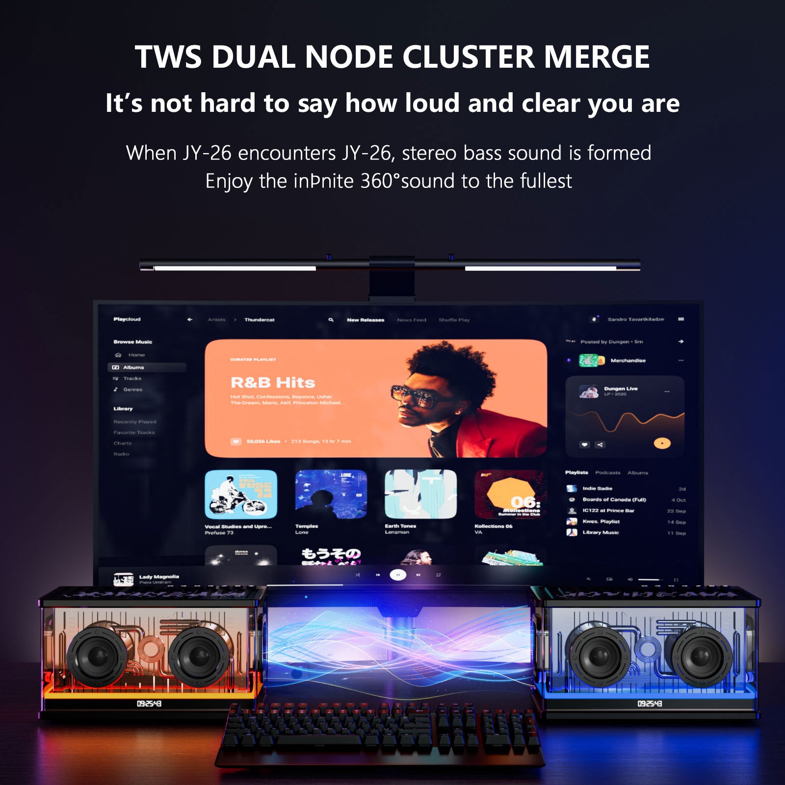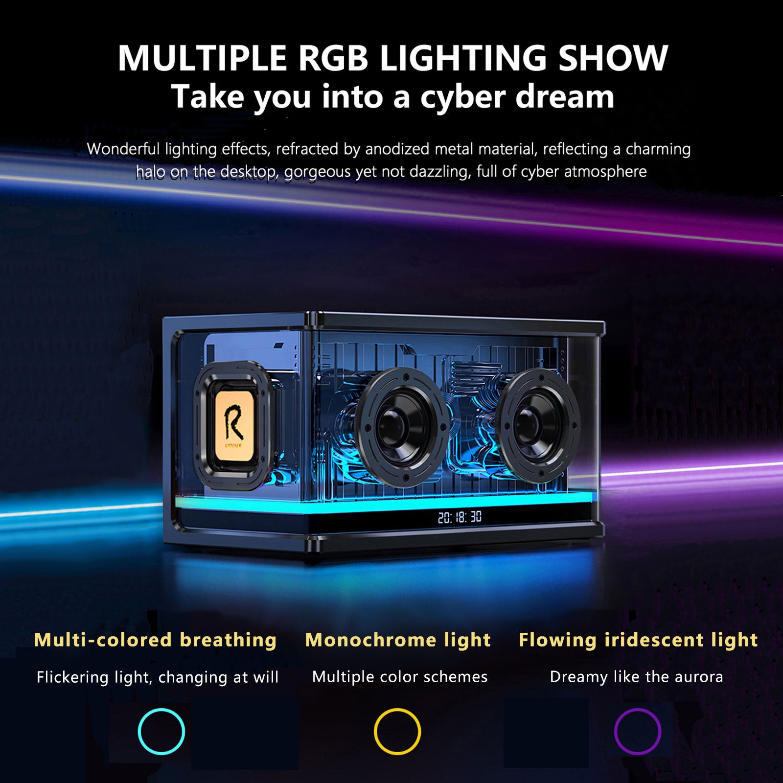The powerful sound waves generated are astonishing, breaks through spatial boundaries, excellent RGB lighting effects, creating a vibrant atmosphere and taking you into a dreamy cyber world.