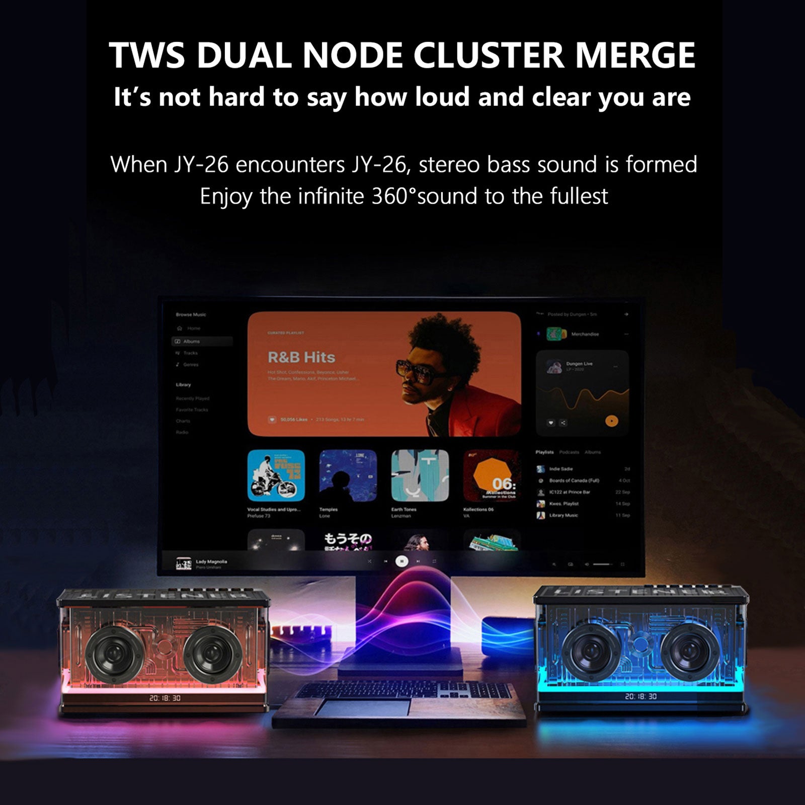 Turn on Blutooth on your phone, search for JY-26 and pair, TWS paring allow you to pair two JY-26 together and enjoy 360°surround music in both left and right channels.